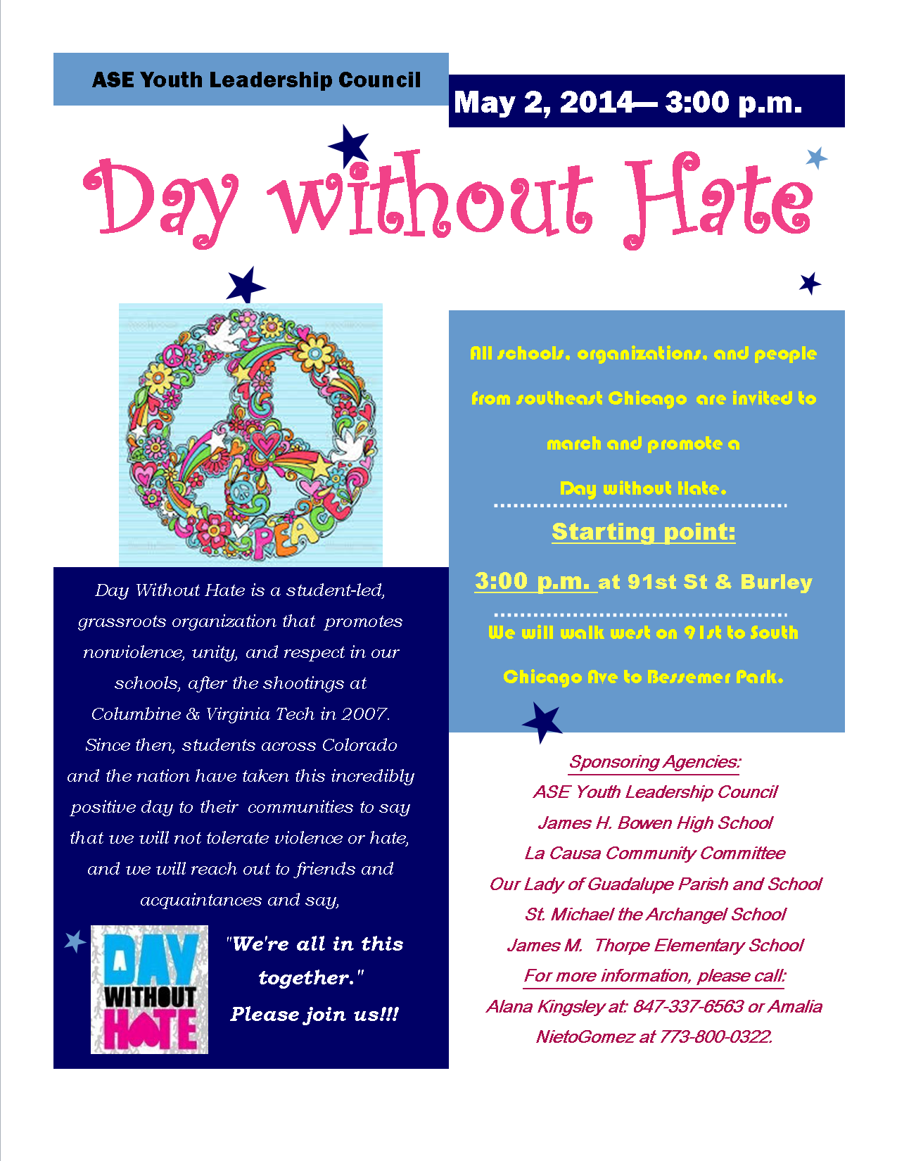 To download a copy of the flier, click here: A Day Without Hate Flier