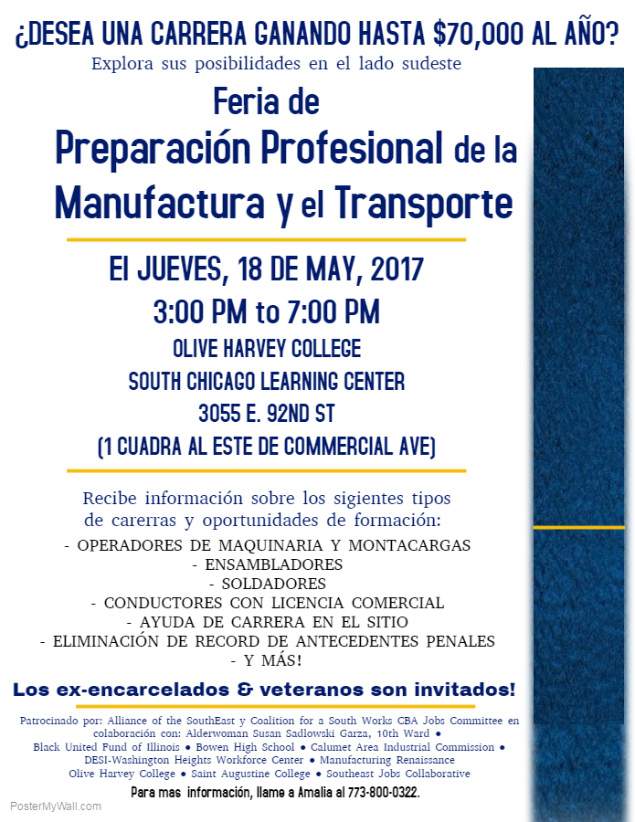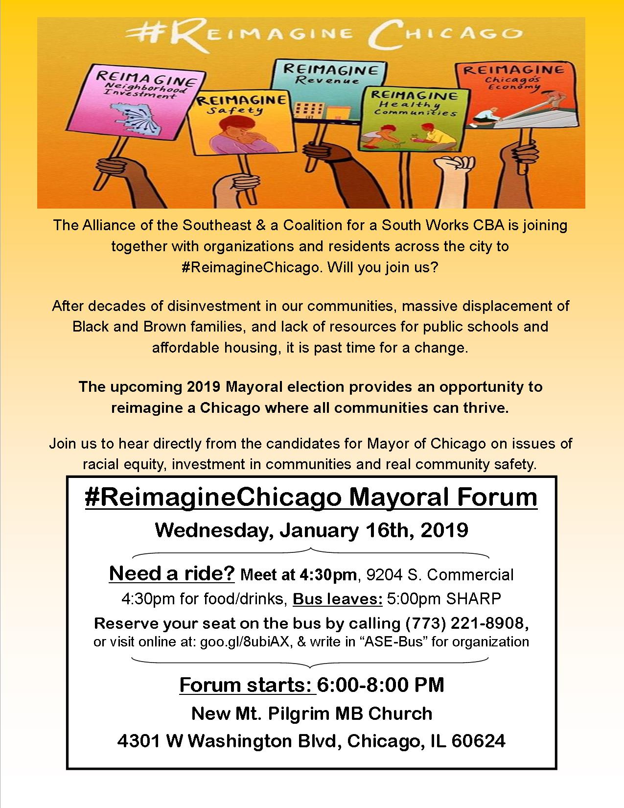Share your ideas! Your recommendations will be shared directly with the City for the We Will Chicago/City Plan. These discussions will also establish the priorities WE want for the southeast side.