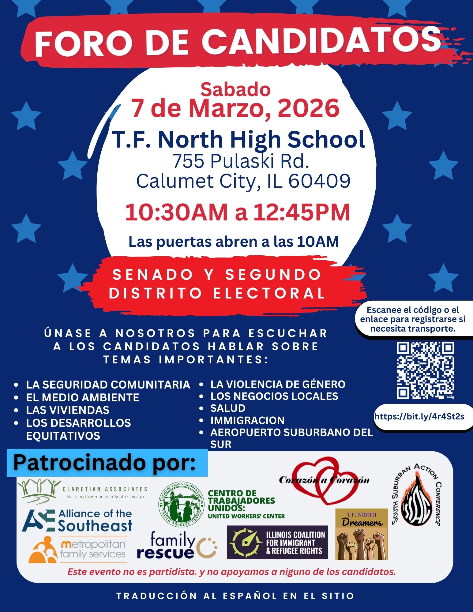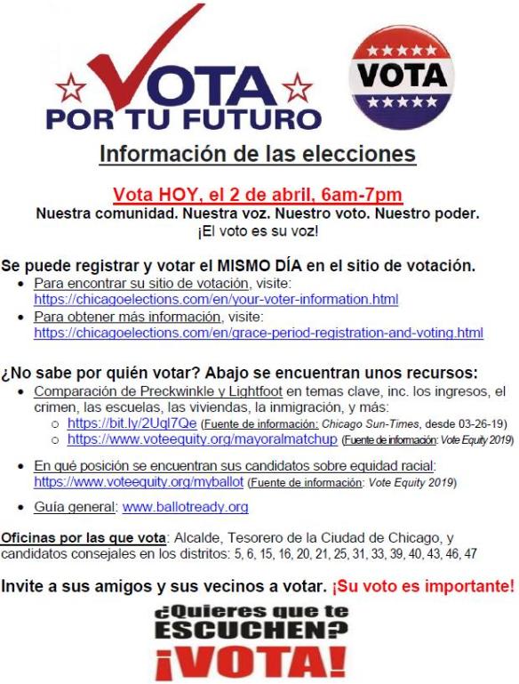 Lugar: Salud Center, 3039 E 91st St, Chicago