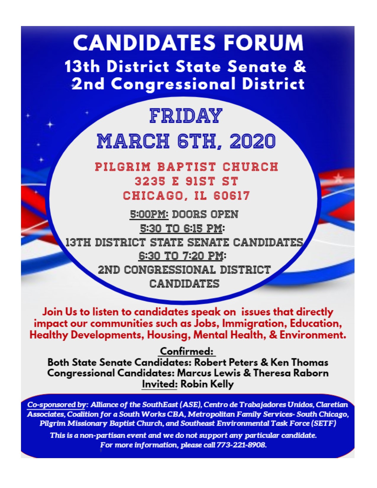 Invited guests: Public officials & candidates from the 5th, 7th, 8th, and 10th wards and mayoral candidates