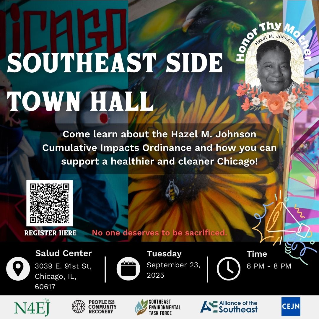 Townhall is centered around the HISTORIC Hazel M Johnson Cumulative Impacts Ordinance. An ordinance that uses qualitative data to protect vulnerable communities from systemic, environmental racism!