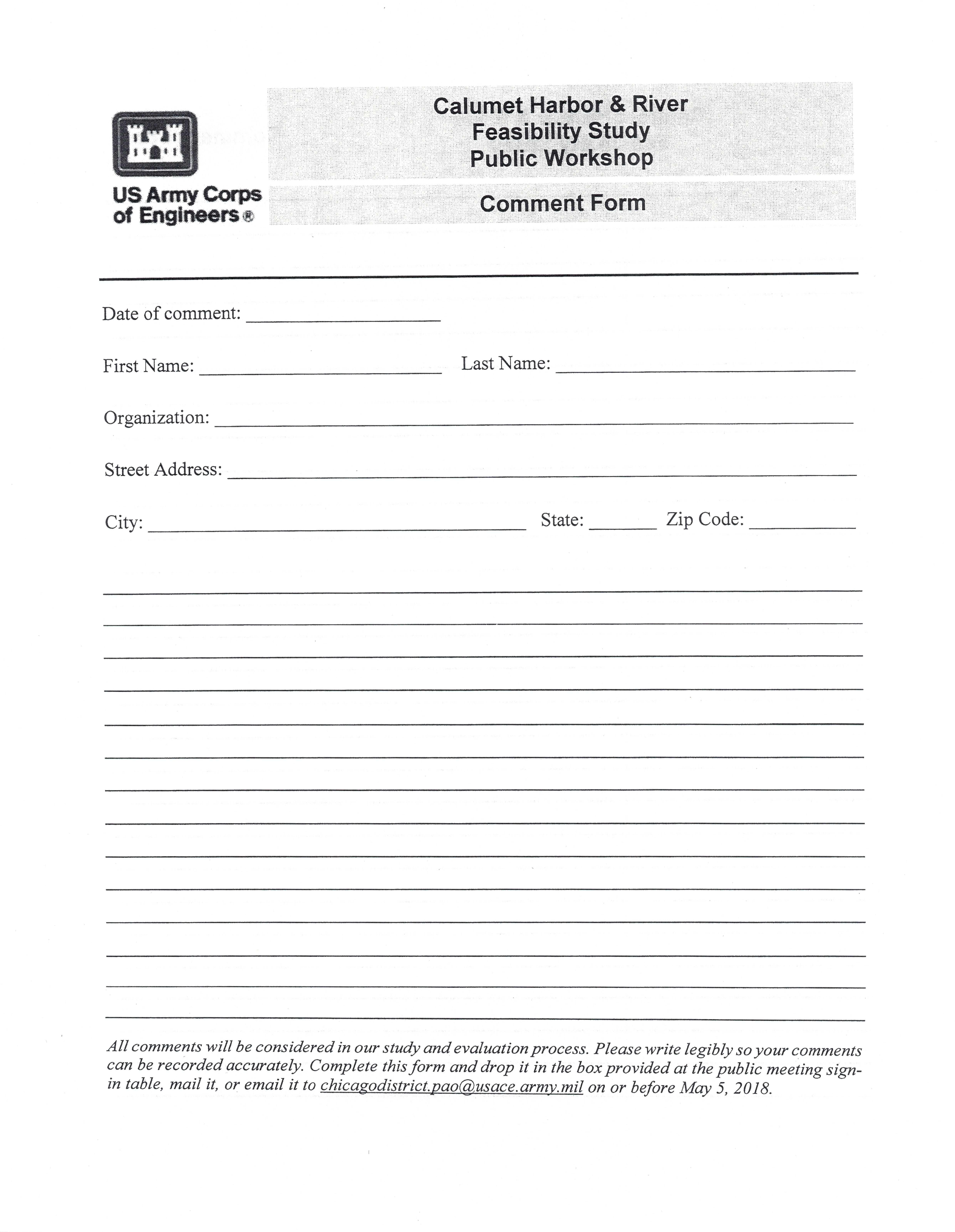 Calumet Harbor-River Feasibility Comment Formp1 Published May 3, 2018 at 4960 × 6395 in Upcoming Events Like Loading...