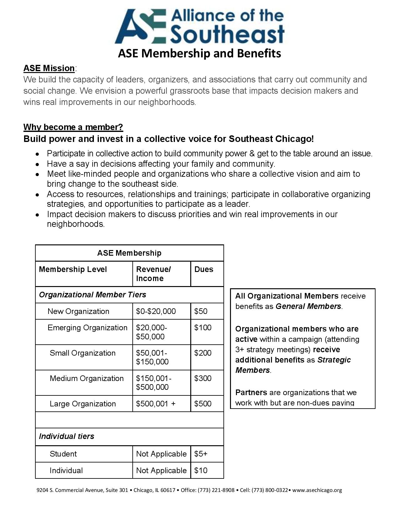 Organizational members: Our organizational members are the heart of ASE. These organizations help plan campaigns, actions, events, forming a powerful network of churches, businesses, schools, non-profits, and labor organizations. ASE partners help provide strategic input, share resources, and network with one another to set priorities and win real victories in southeast Chicago.